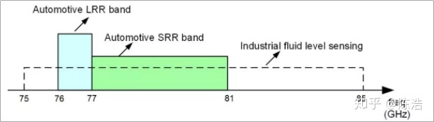 77GHz 毫米波雷達應(yīng)用頻段示意圖